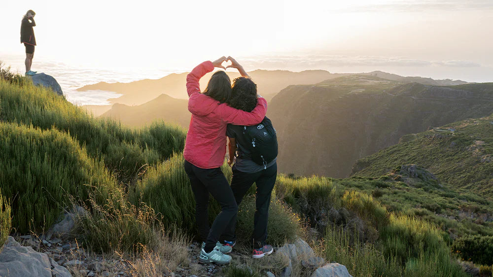 Er der udsigt til regn, så skal det yderste lag selvfølgelig kunne holde vand ude. For at holde tæt i kraftige byger, skal det kunne klare et vandsøjletryk på 3000mm. Skal det holde dig tør i silende regn en hel dag, så skal det klare et vandsøjletryk på 10.000mm. Husk, at det også skal være åndbart, så fugten fra din krop kan komme væk. Uanset vejret, så vil varmen fra din krop afsætte fugt og sved i dit tøj, når du er aktiv. Dit tøj skal derfor kunne lede fugten væk – fra inderst til yderst. Ellers kan du ikke holde dig tør og tempereret. Hvor bomuld suger fugt til sig og holder på den, så lader svedtransporterende materialer fugten fordampe. Derved bliver du ikke fugtig og kold. Og det er rigtigt vigtigt, når du er udenfor i lang tid eller langt væk hjemmefra. Klæd dig hellere i tre eller flere tynde lag, frem for få tykke, så kan du bedre finjustere din kropstemperatur, hvis du bliver for varm undervejs. Ved at fjerne et tyndt lag, sænker du temperaturen en smule ad gangen – og du vil stadig have nogle lag tilbage på kroppen. Du kan se vores regntøj til kvinder her og mænd her.