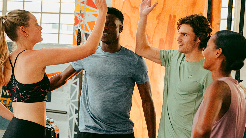 Glem alt om bomuldstøj, når du dyrker fitness. Bomuld holder på sveden, bliver tungt og gør dig kold og fugtig. Vælg i stedet tøj i materialer, der transporterer sveden væk fra kroppen. Det gælder fra top til tå og fra inderst til yderst. Om du vælger at træne i en fitness t-shirt med 3/4 tights, eller fitness hoody med tights er op til dig. Du kan se vores udvalg af fitnesstøj til kvinder her og mænd her.Dit tøj skal være strækbart, give dig bevægelsesfrihed og få dig til at føle dig smart og veltilpas. Der findes faconer, farver og materialer til alle kropstyper og behov. Nogle bukser findes i flere benlængder. Prøv løs og spørg personalet om hjælp hvis du er i tvivl. Brug altid en god sports BH med behagelige sømme, god støtte og korrekt pasform, når du træner. En almindelig BH giver ikke støtte nok. Jo højere intensitet, der er i din træning – des mere støtte har hud og bindevæv i brystet brug for. For kvinder er en god sports-BH også vigtigt til Crossfit, da man både hopper og løber i Crossfit. Når du dyrker Crossfit skal du have tøj på, der sikrer dig stor bevægelsesfrihed, er svedtransporterende og har få syninger. Hvis du træner meget og har trætte eller ømme ben, kan kompressionsstrømper være en hjælp. Du kan se vores udvalg af sports BH'er her.
